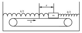 Рассмотрим систему, представленную на рис. 3. Брусок массы m , лежащий на ленте транспортера, прикреплен к стене горизонтальными пружинами с коэффициентами жесткости k/2 . Лента транспортера движется с постоянной скоростью u . Между бруском и лентой действует сила трения скольжения.