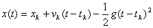 будет высота мячика в момент времени t после k-го столкновения, где xk – высота при k-м столкновении, и tk - время k-го столкновения, и пусть